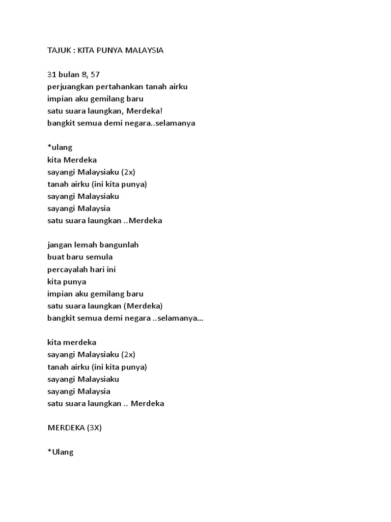 LIRIK LAGU KITA PUNYA MALAYSIA BUNKFACE LIRIK LAGU KITA PUNYA MALAYSIA BUNKFACE.